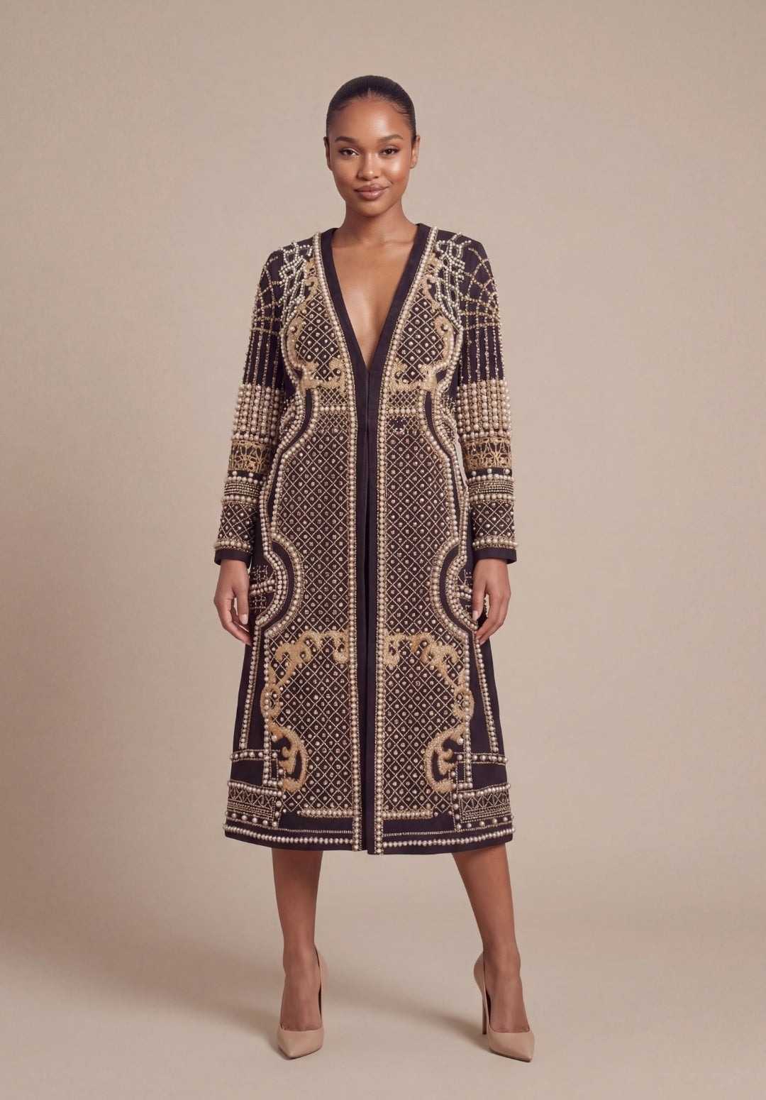 Pearl Embellished Coat Dress