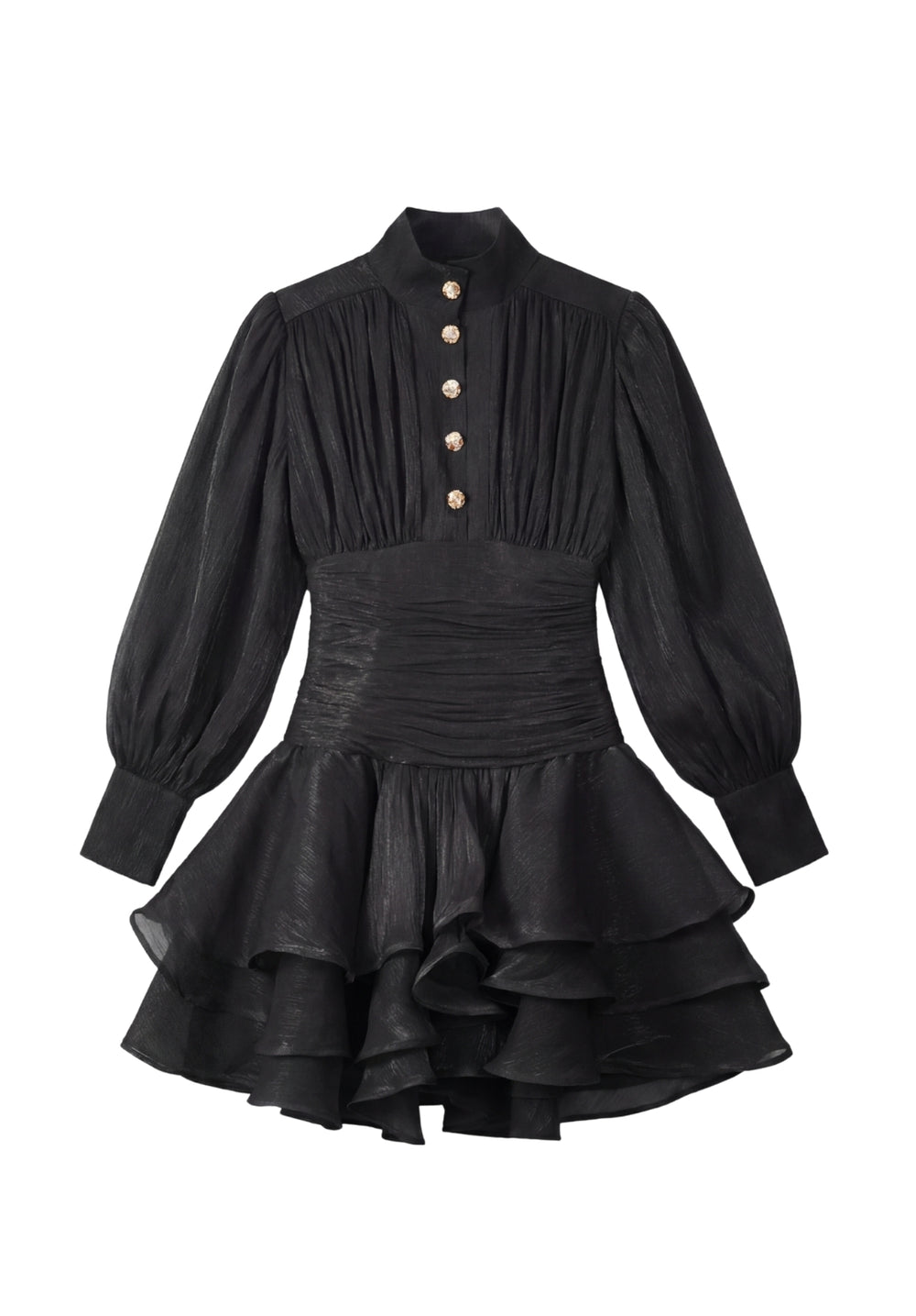Tiered Puff-Sleeve Dress